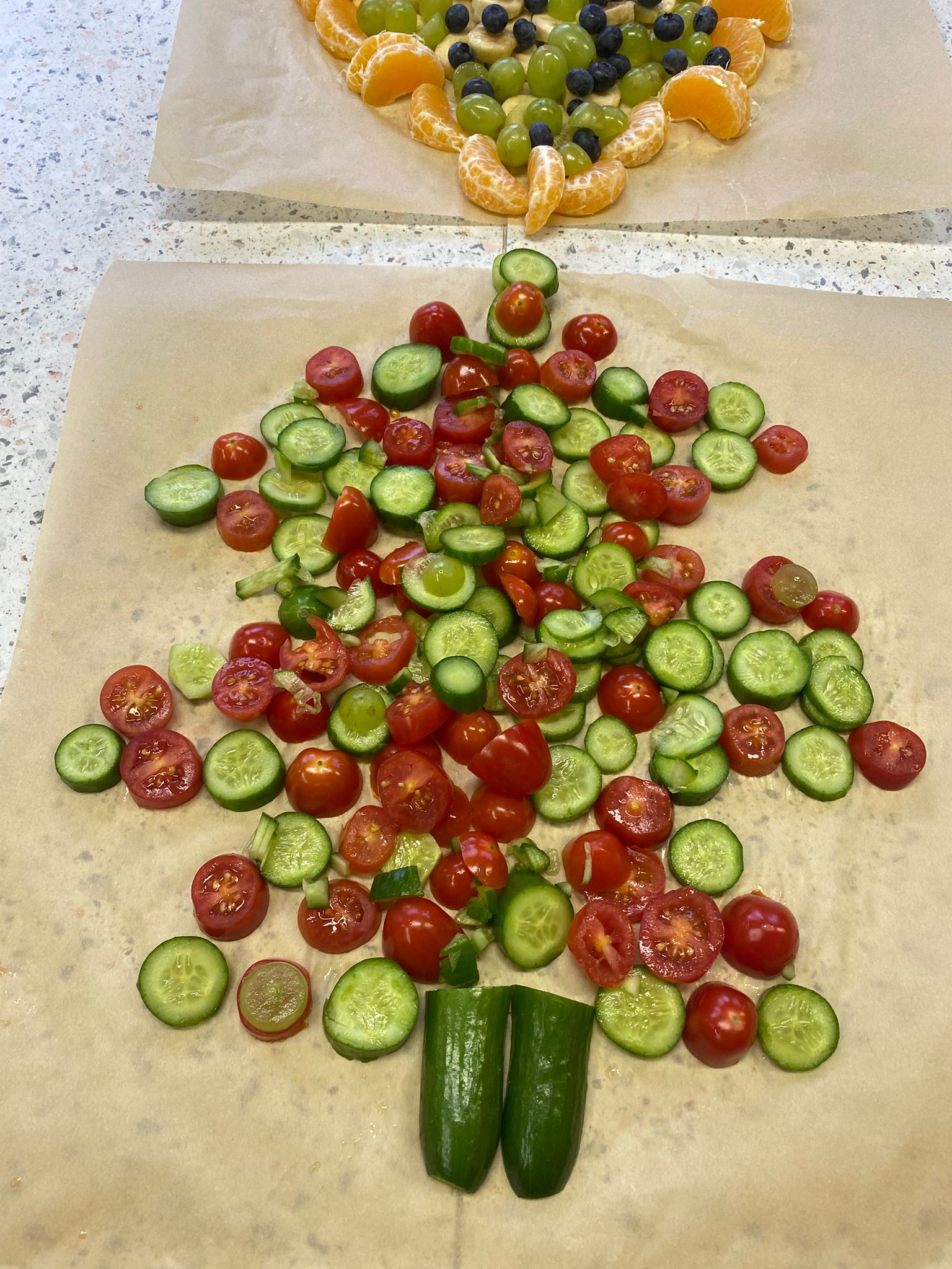 Tannenbäume aus Gemüse, Obst und Brotteig- danke an Stephanie Queiser!