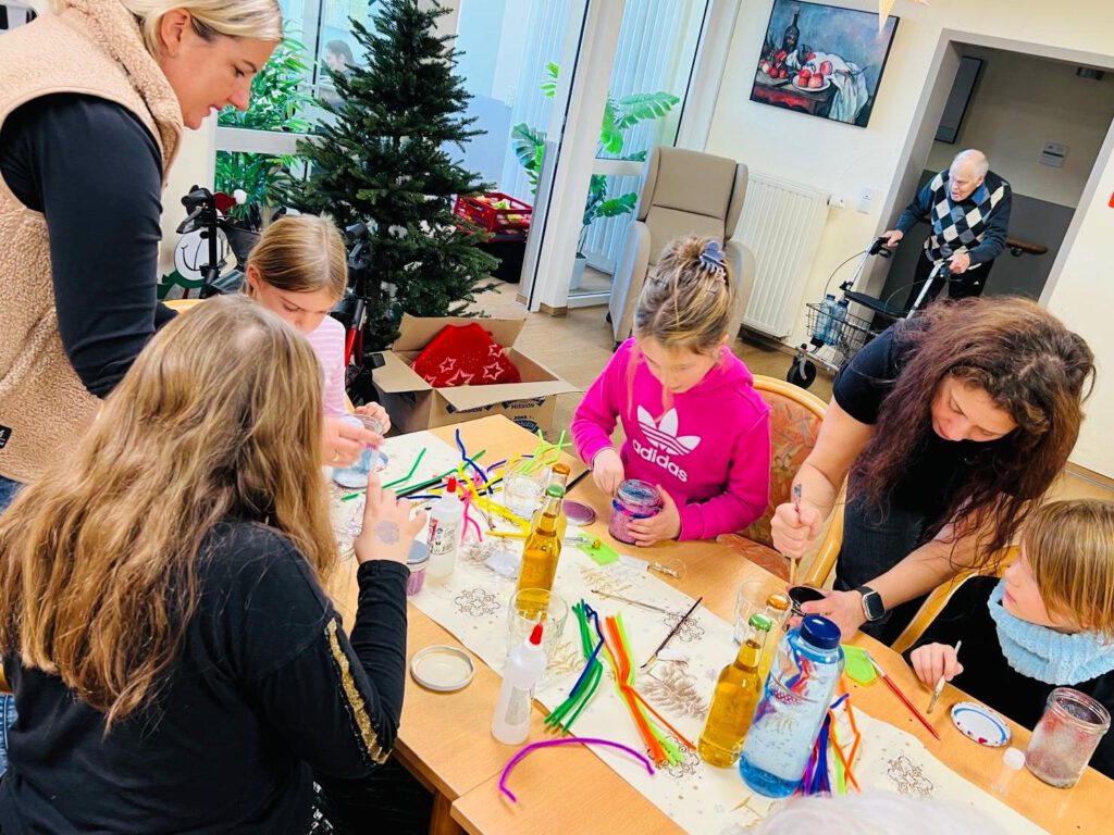 Gemeinsam mit den Bewohnerinnen und Bewohnern gestaltete die Klasse die Milchstraße als Windlicht. Außerdem hatten die Kinder „Wer wird Millionär-Spiele“ vorbereitet, bei denen die Bewohnerinnen und Bewohner ihr Wissen rund um das Thema „Planeten“ unter Beweis stellen konnten.